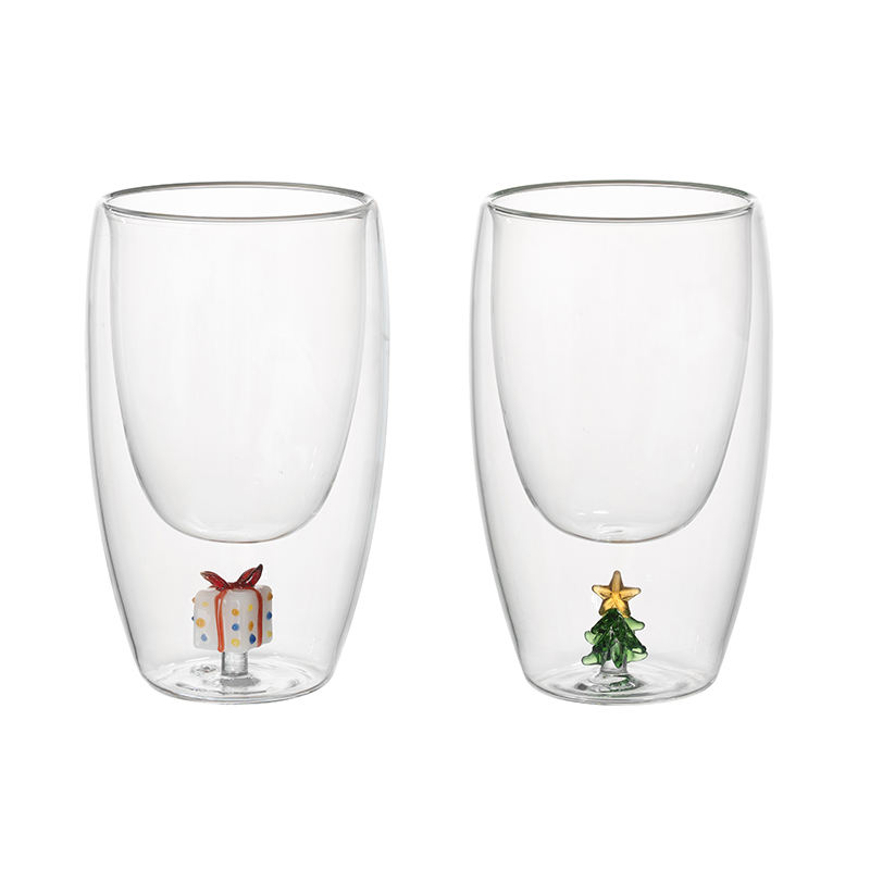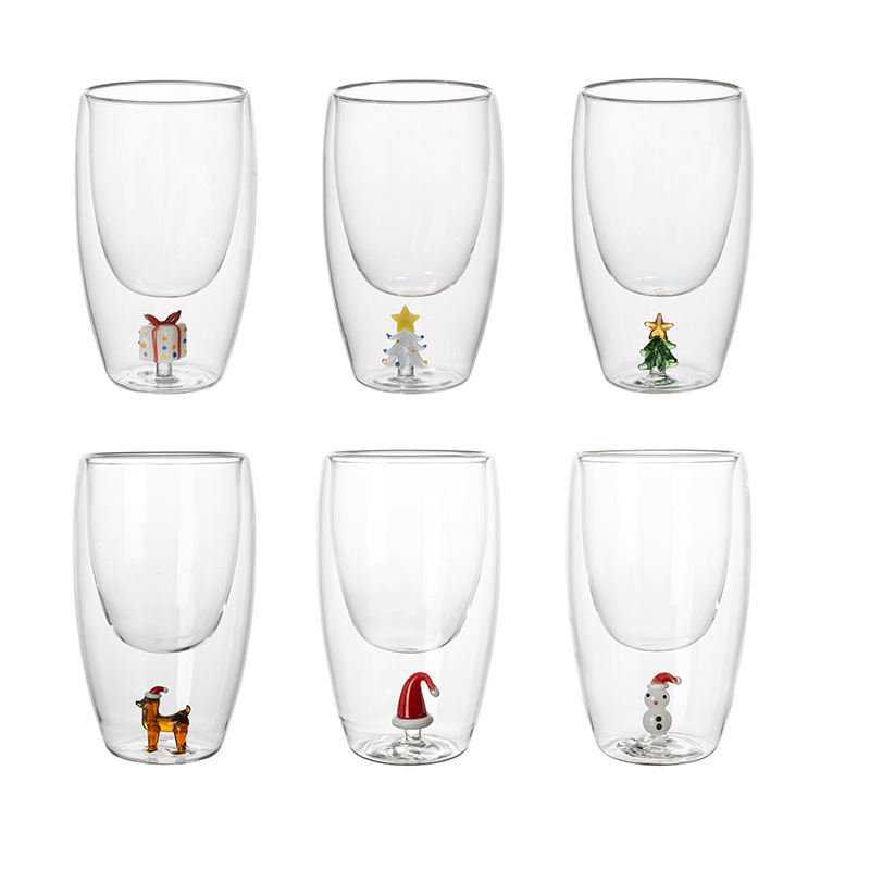 Christmas elements are embedded between the cup walls, creating a cute design that doesn't come into contact with the beverage, making it safe and aesthetically pleasing.