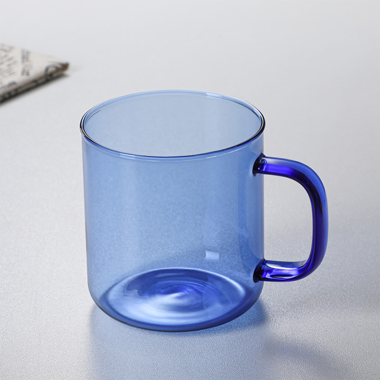 Our 400ml colored glass mug with a handle adds a touch of vibrancy to your life. This handled glass mug is available in four vibrant, translucent colors—blue, green, pink, and yellow—adding a splash of color to your kitchen or office.