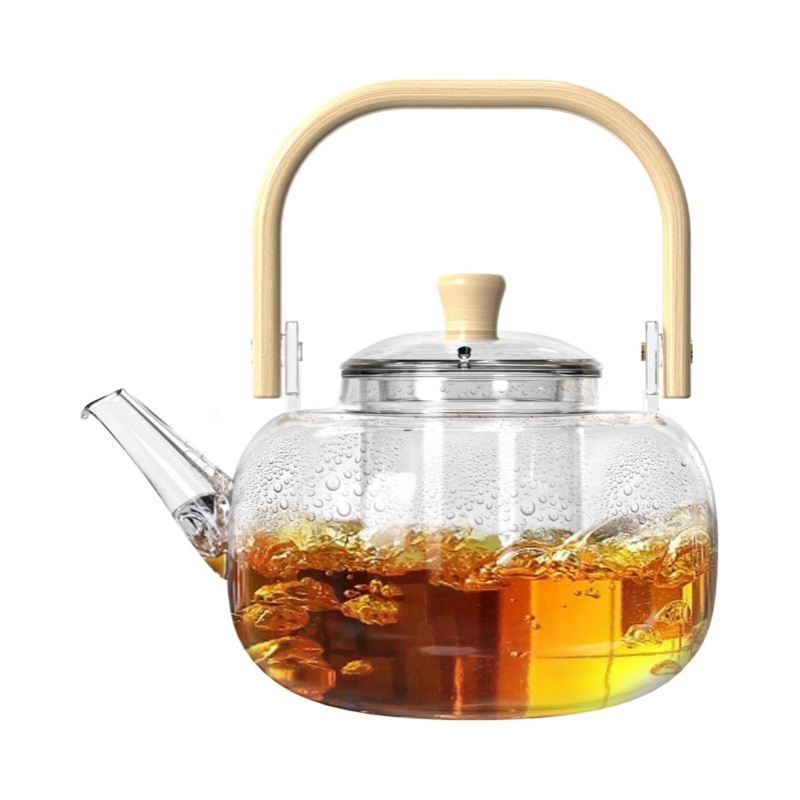 This glass teapot is designed with user comfort in mind, featuring a sturdy, curved wooden handle that offers a superior grip and excellent heat insulation. Unlike heat-conducting metal handles, the natural wood handle remains cool even when the teapot is filled with boiling water, making pouring safe and easy.