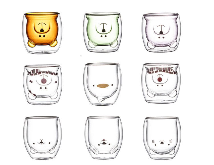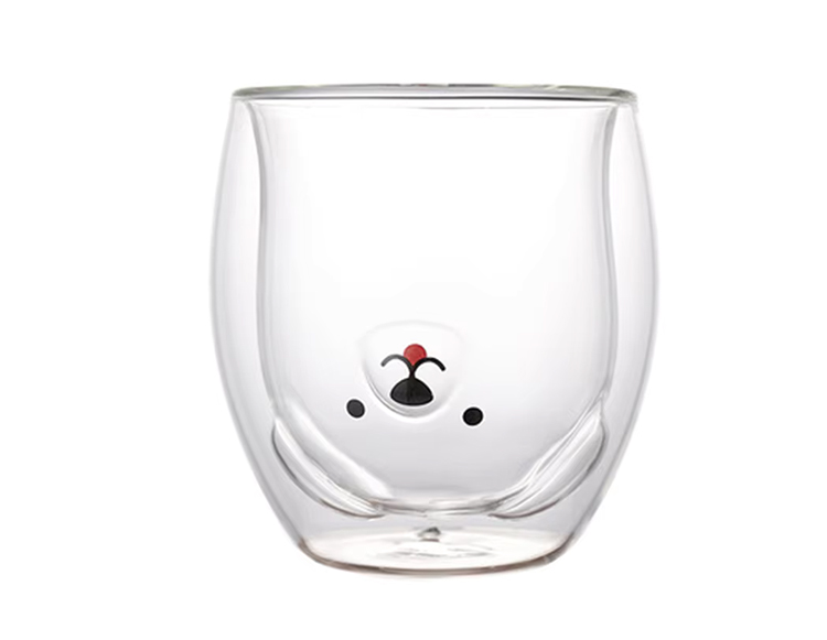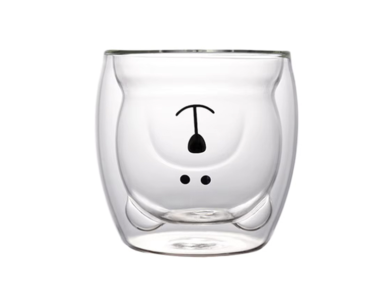 This double-walled glass cup is made of high-borosilicate glass, with a charming cartoon bear design cleverly sealed between the two layers of glass. The transparent glass material allows the bear pattern to be clearly visible, adding a playful and adorable touch to your beverage.