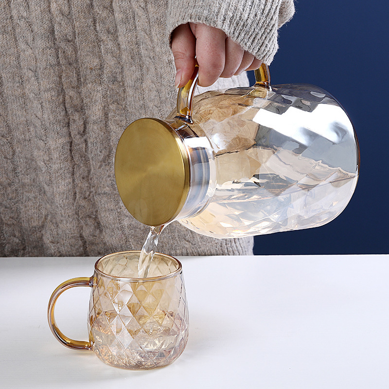 The most striking feature of this glass pitcher is its diamond-patterned surface, meticulously crafted like a multifaceted gemstone. Each sharply defined facet subtly reflects light, creating a dazzling effect that adds depth and sophistication to any space.