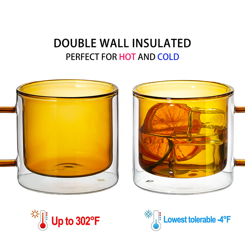 This double-walled glass mug features a sturdy handle for easy gripping, allowing you to comfortably hold the cup without worrying about heat transfer. The handle design is perfect for both hot and cold beverages, providing a convenient and comfortable grip.